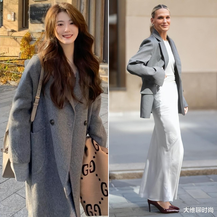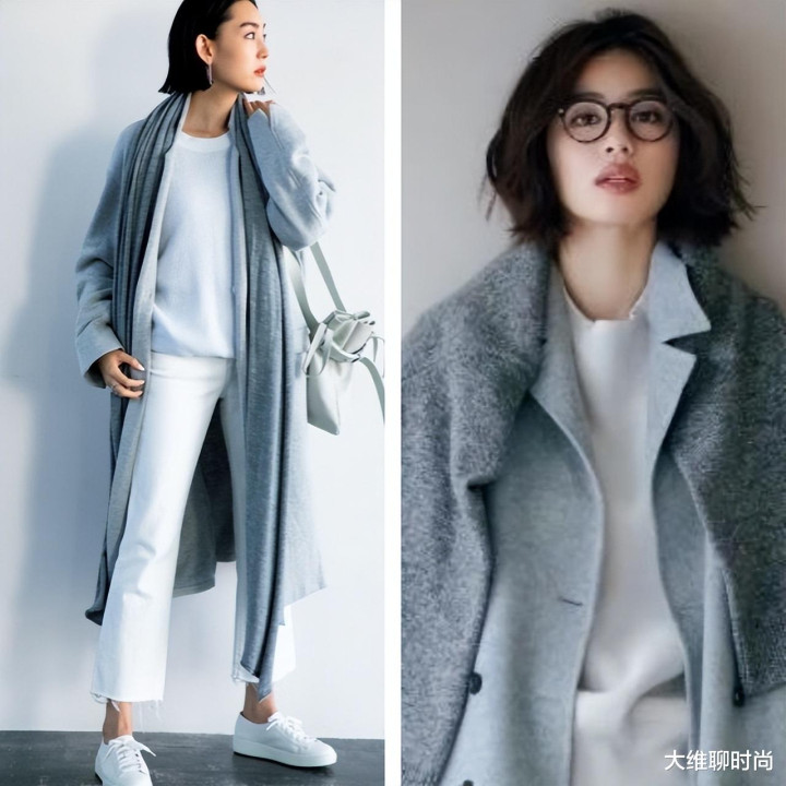 穿搭时可通过材质和层次的变化来增加丰富度,如浅灰呢大衣配白色毛衣、白衬衫配灰色裤装,简洁却不单调。可利用不同面料的质感对比,突出整体的立体感与精致感。