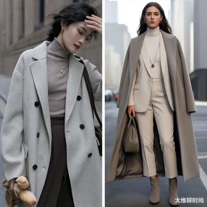 搭配时可以通过材质的差异,如毛呢与棉质,来增加层次感与深度,同时避免过于平淡。保持简约的设计和利落的剪裁,有助于凸显出细腻的品味。